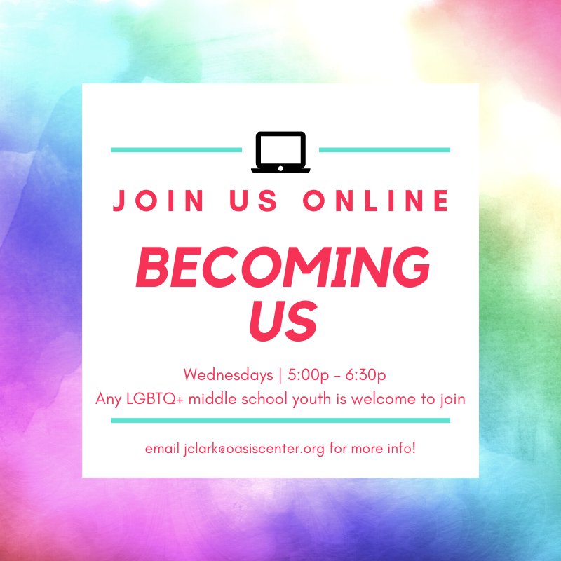 Becoming Us is open to any LGBTQ+ middle school youth. Email *protected email* to join our server!